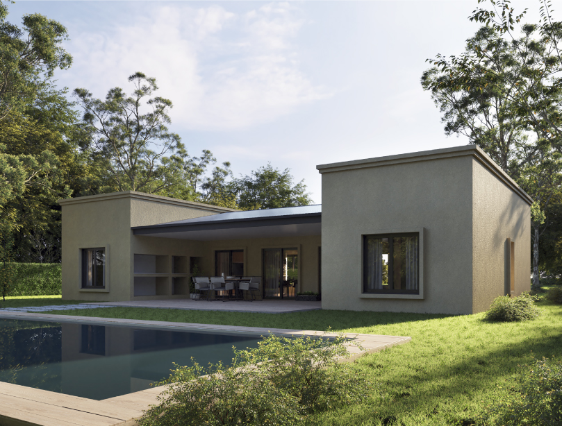 Con la mirada puesta en el futuro, surge este nuevo Proyecto de Vivienda. Se trata de una vivienda que resuelta constructivamente de manera eficiente: Sistema de steel frame, ventilación cruzada, utilización de parasoles para controlar la entrada de luz, entre otras. La idea de la vivienda es seguir un nuevo paradigma de construcción y vida, una conciencia de responsabilidad ambiental, en donde lejos de lastimar el entorno, lo favorece al crear un desarrollo sostenible que sea generador y regulador de los recursos naturales.